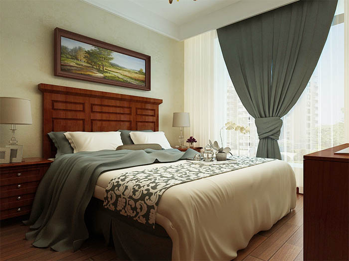 设计说明:当疲惫的身心对家的依恋越发强烈,人们想要的是轻松、自由的环境,“美式风格”自然就成为家居设计的一种风尚。 本案以“木色为基调”,在居室的空间的处理上,力求表现自然轻松的情趣,将空间化零为整,增加诸多的储藏空间,设计上讲求色彩关系,注重大小色块间的组合。在室内,窗帘、桌巾、沙发套、灯罩等均以纯色调和棉织品为主。素雅的条纹图案也是常用的元素,采用纯色、线条简单且修边浑圆的木质家具与彩色玻璃吊灯相得益彰。马塞克和玻璃花瓶也装饰于空间中。鲜花和绿色的植物也是很好的点缀。