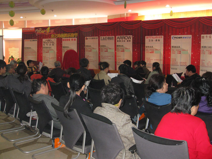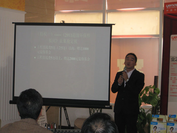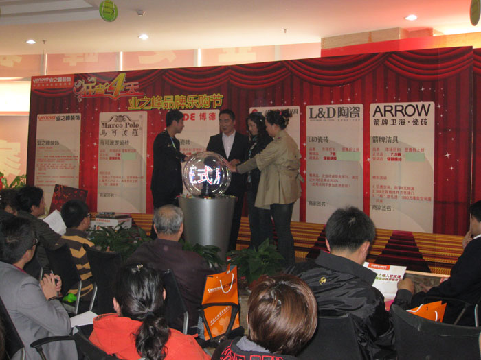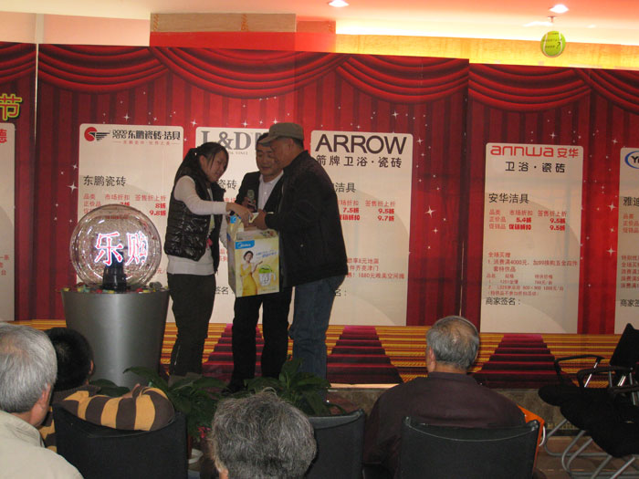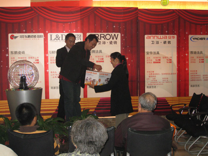 主材商在揭晓优惠后的抽奖环节为幸运客户颁发奖品